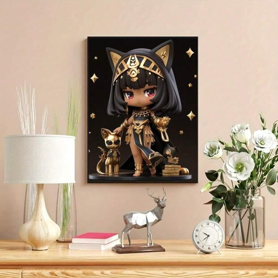 1PC The Queen Of Egypt Diamond Art Painting Kits Crafts Stickers Fantasy Girl Golden Cat Charming Embroidery Mosaic Cross Stitch Rhinestone 5D DIY Picture Sets Home Room Wall Decor Festival Holiday Handmade Toys Gift