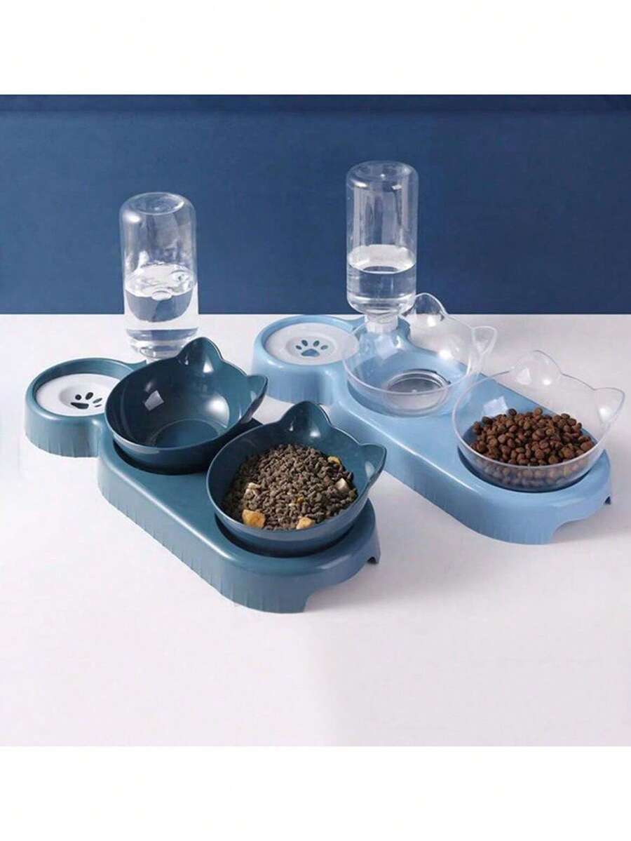1pc 3-In-1 Elevated Pet Bowl With 500ml Water Bottle - Automatic Dog And Cat Feeder - Feeding Station, Neck Protection Design, Comes With Gravity Water Bottle, Protects Neck, Cat Bowl, Cat Food Bowl, Dual Bowls Protect Cervical Spine, Automatic Water Bowl, Anti-Spill Cat Food Bowl, Pet Supplies, Self-Filling, Full But Not Overflowing, Cat Bowl Multi-Slot Rotatable Design, Detachable Design, Fully Washable