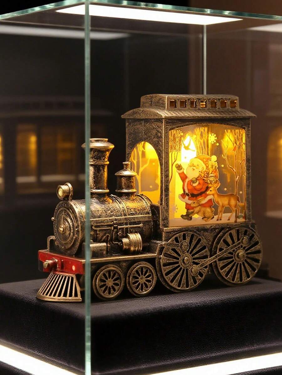 1pc-3D Christmas Train Night Light Decoration,Santa Claus Train LED Lights Festive Snowman, Reindeer Christmas Tree Design Beautiful Plastic Freestanding Upper Lights With Button Battery For Home ,Office Or Various Room Types Holiday Decor Christmas Decorations Winter Room Decor