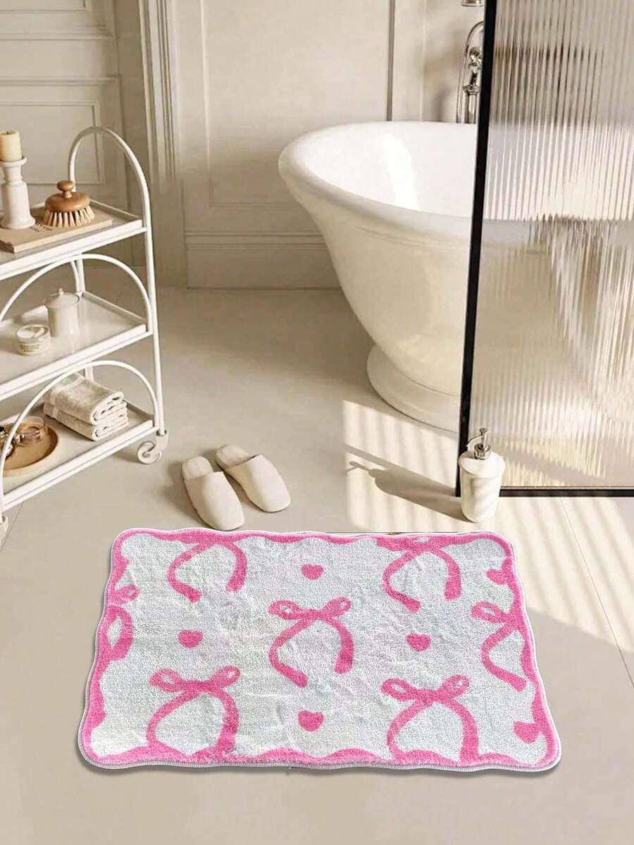 1pc Lovely Bow Design Bathroom Mat Carpet, Sweet & Cute Style Girly Carpet, Soft & Comfortable Faux Wool Carpet, Suitable For Living Room, Bedroom, Closet, Entryway, Kitchen, Bedside, Durable & Dust-Proof