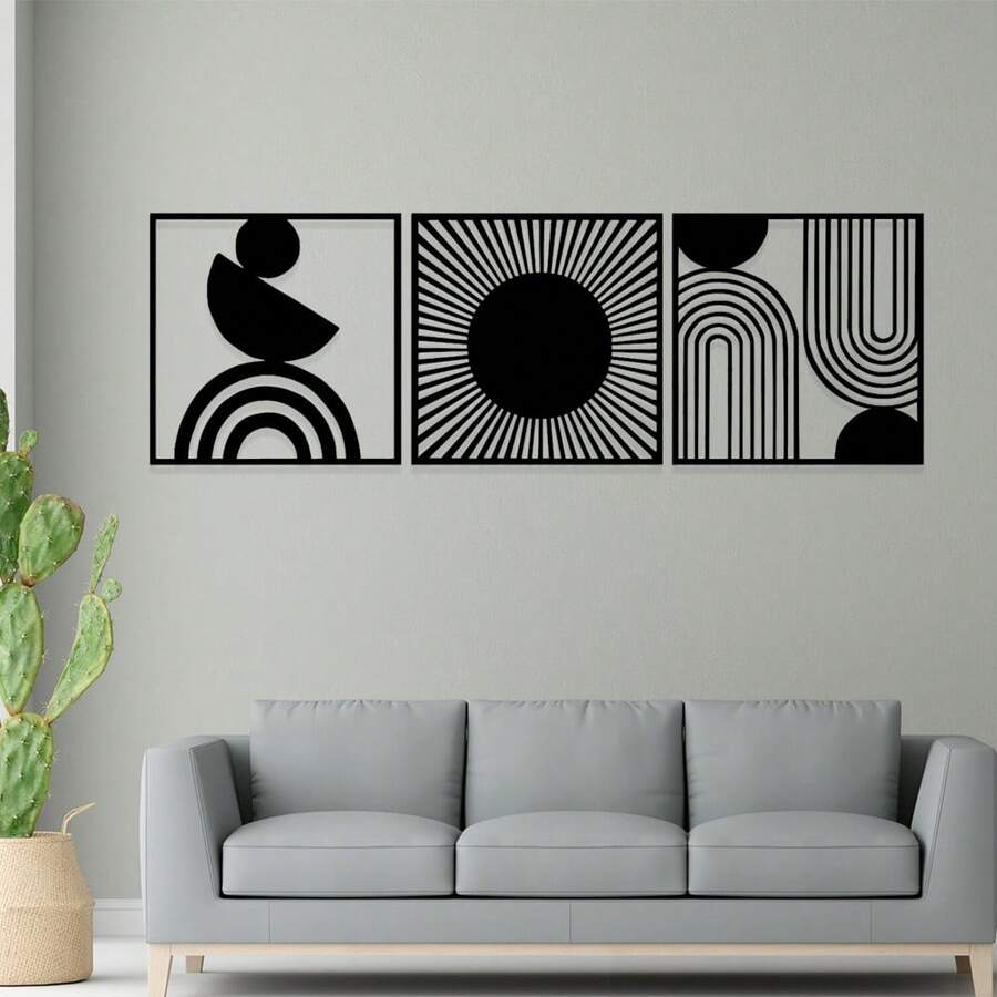 1pc/3pcs Modern Abstract Geometric Metal Wall Art - Contemporary Iron Hanging Ornaments For Living Room, Bedroom, Lounge - No Electricity Required, Featherless Home Decor Set