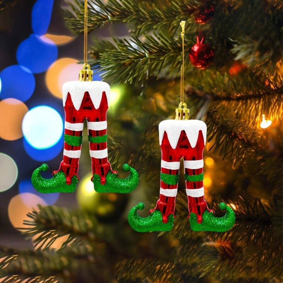 2 Packs Glittery Plastic Christmas Elf Legs Ornaments - Red & White Striped Elf Boot Tree Pendants, Festive Holiday Decorations For Seasonal Celebrations Home Decor Christmas Decorations Room Decor