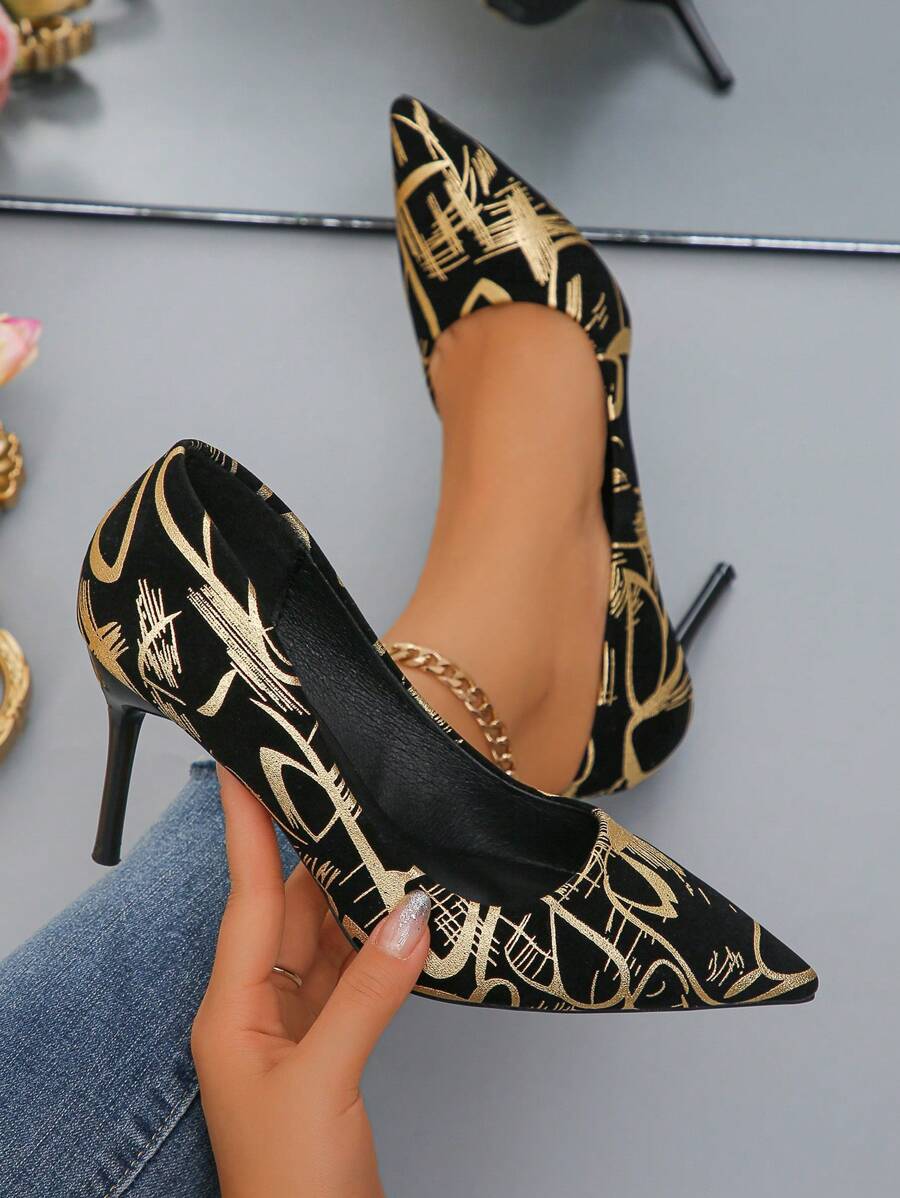 2023 New Arrival Pointed-Toe Leather High Heels, Thin Heel, Comfortable, Plus Size, Versatile, Suitable For Work And Commuting, Gold, Sexy, Low Vamp