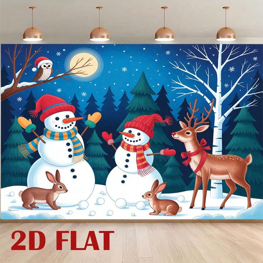 2D Flat Background Banner, Cozy Christmas Snowy Landscape Decor Pattern Background Cloth, Party Decoration Banner, Suitable For Photography Backdrop, Self-Portrait Wall Decor, Indoor And Outdoor Celebration - Ideal Gift
