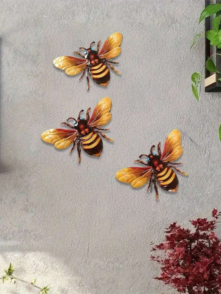 2pcs Acrylic Bee Wall Art Set - Realistic Outdoor Decor For Patio, Garden, Fence And Balcony, Hanging Design, Natural Style Decoration, Bee Decor, 4 Seasons Use, Adhesive Backing