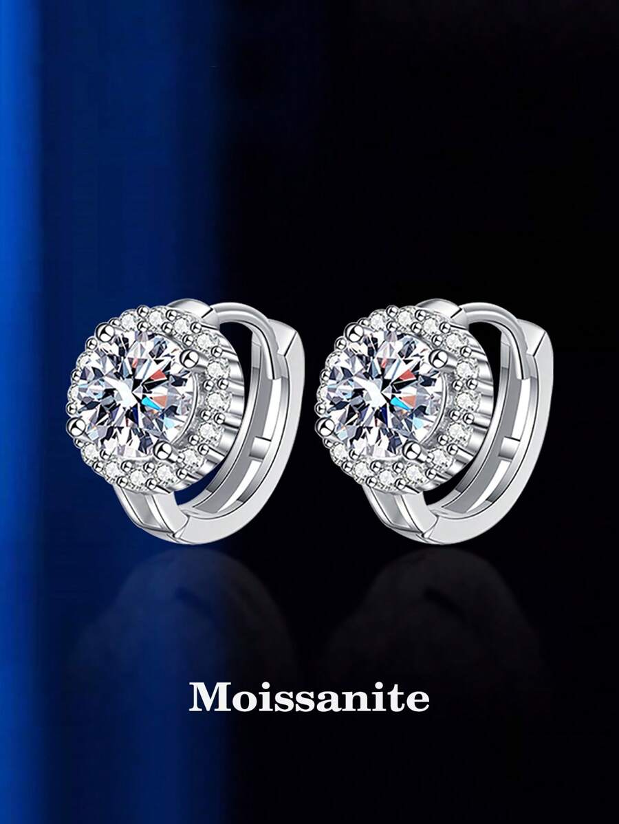 2pcs Fashionable And Versatile 925 Silver 50pt Moissanite Stud Earrings For Women, Suitable For Daily Wear, Office, Party Or As Mother Day Jewelry Gift Rhinestone Earrings