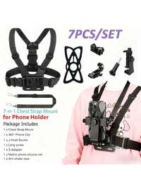 7-In-1 Adjustable Chest Mount Phone Holder, Compatible With IPhone/GoPro/Insta360 Action Camera, Suitable For Cycling, Kayaking, Fishing, Skateboarding And Other Sports POV/VLOG Shooting, Adjustable Chest Strap, Hands-Free, Easy To Shoot Phone And Action Camera.