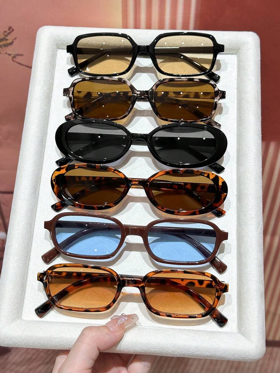 • 6pcs Geometric Plastic Full Frame Leopard Boho Casual Women Glasses Combination For Holiday Gift Festival Outfit Carnival Aesthetic Vacay Vibes Summer Accessories