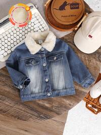 SHEIN Baby/Baby Boy/Girl Padded Denim Jacket, Thermal Lined Thickened Quilted Coat, Comfortable Casual Daily Fashion Personalized, Suitable For Indoor, Outdoor, Daily, Sports, Play, Party, Photo Shoot, Festival, Halloween, Christmas, Fall And Winter SHEIN Baby Boys Fall & Winter Clothes Outfits, Thermal Lined Hooded Jacket Coat, Padded Coat, Quilted Coat, Comfortable Versatile Fashionable All-Match Classic Casual Style, Suitable For Indoor, Outdoor Skiing, Daily Wear, Sports, Play, Party Holidays Baby Boy Winter Coat Baby Boy Black Jacket Baby Boys Fleece Jacket Baby Boy Hooded Coat Baby Boy Warm Jacket
