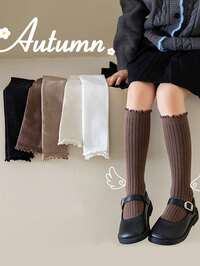5/2/1 Pair Pack Children's Mid-Calf Socks, Suitable For Boys, Girls, Infants, Black, White, Khaki, Coffee, Solid Color, Striped, Massage Bottom, Pineapple Pattern Bottom, All Season, Thin, Mid-Calf, Casual, Fashionable, Comfortable, Versatile, Cute, Suitable For Daily Wear, Can Be Paired With Casual Shoes, Sneakers, Back To School Season, Students, New School Term, Start Of School, Classroom