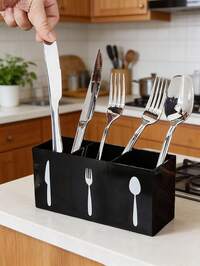 1pc 3-Grid Kitchen Storage Box, Knife And Fork Storage Rack, Separated Dining Table Kitchen Storage Basket, Silverware Knife And Fork Chopsticks Fork Straw Storage Box, Kitchen Storage And Organization, Home Decoration, Gifts