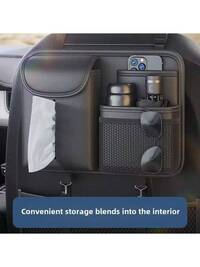 Car Seat Backrest Manager, Rear Storage Bag With Elastic Adjustment Function, Leather Multi Pocket Anti Kick Pad, Seat Protector, Car Interior Storage Bag, Multifunctional Storage Bag Between Seats, Car Interior Storage, Mobile Phone, Cosmetics, Wallet, Keys And Other Accessories