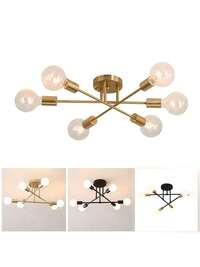 1pc Vintage Iron Branches Pendant Light, 6 Lights, Black/Gold, Modern Living Room Chandelier, Industrial Style Farmhouse Pendant Lamp, Suitable For Indoor Decoration, Living Room, Bedroom, Dining Room, E14 Bulb Socket, AC85-265V, D88cm/35 Inch (Bulbs Not Included) 6-Light Ceiling Pendant Light, Aluminum Alloy, E27 Bulb Base, Black/Gold, Vintage Style, Suitable For Exhibition Hall, Reading Room, Dining Room, Bar, Bedroom, Cafe, Dining Hall, Clothing Store, Living Room, Kitchen 4-Light E27 Branch Pendant Light, Modern Luxury Design For Living Room, Bedroom, Dining Room, Kitchen, Hallway, Entryway, Closet, Staircase, Balcony, Bathroom