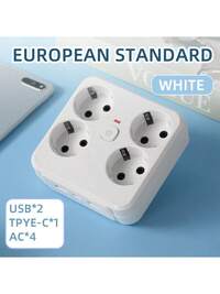 A US Plug Socket Distributor With Multiple Outlets, Featuring 3 Power Ports, 2 USB Ports, And 1 Type-C Port, Equipped With A Master Control Switch. Suitable For Home, Office, School, And Dormitory Use Suitable For Multiple People Charging, Multiple Devices Charging, Home Charging Needs, And Office Desks Home Office Charging Station