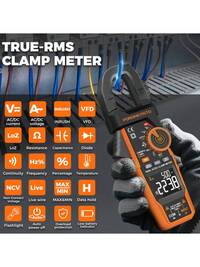 CM06 And CM06Pro Digital Clamp Meter Multimeter 600A/1000A Current Meter Voltage Tester 6000 Counts Clamp Meter True Amp Hz Ohm Capacitance. It Also Includes NCV, Real-Time, Max, Min, Hold, Inrush, VFD, Flashlight, Auto Power Off, Full Range Overload Protection, Low Battery Indicator.