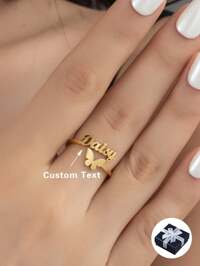 Personalized Minimalist Butterfly Name Ring, Custom Made Stainless Steel Ring, Luxury Gift For Lovers, Friends, Mom, Perfect For Christmas, Halloween, Anniversary,Customized Fashion Word Rings,Street Casual Chic,New Year Glamour #5 Bestseller