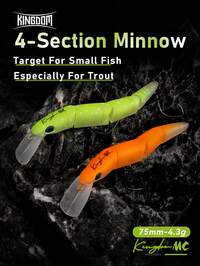 KINGDOM 4-SECTION Minnow Slow Sinking Minnow Lure 1pc 75mm 4.3g For Trout Target For Small Fish ABS Fishing Tackle Artificial Hard Baits Crankbaits Tackle Wobblers
