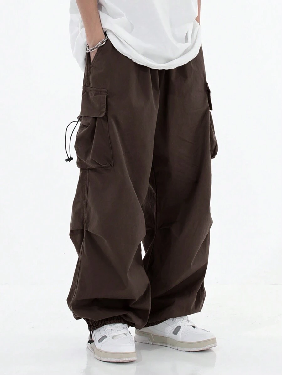 Functional Paratrooper Cargo Pants, Men's High Street Fashionable Brand Loose Hiphop Style Wide Leg Straight Casual Long Pants, Men's Outdoor Streetwear, Fall
