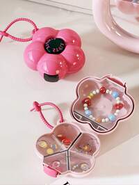 1PC Portable Dopamine-Style Pill Organizer Box – Transparent Layered Travel Case For Pills, Mini Makeup & Jewelry Storage – Floral Design, Detachable Compartments, Hanging Strap