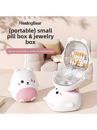 1pc Cute Bear Divided Pill Box/Jewelry Box - Portable 5-Compartment Divided Travel Organizer Box, Compact & Convenient For Travel, Hotel, Office, Dorm Use, Can Also Be Used As Vanity Desk Decor To Store Bear Jewelry, Earrings, Rings, Cosmetics - Gift For Women And Teens, Mini Portable Pill Box, Adorable Cartoon Bear Jewelry Box, Sealed 5-Grid Travel Pill Box, Travel Essential