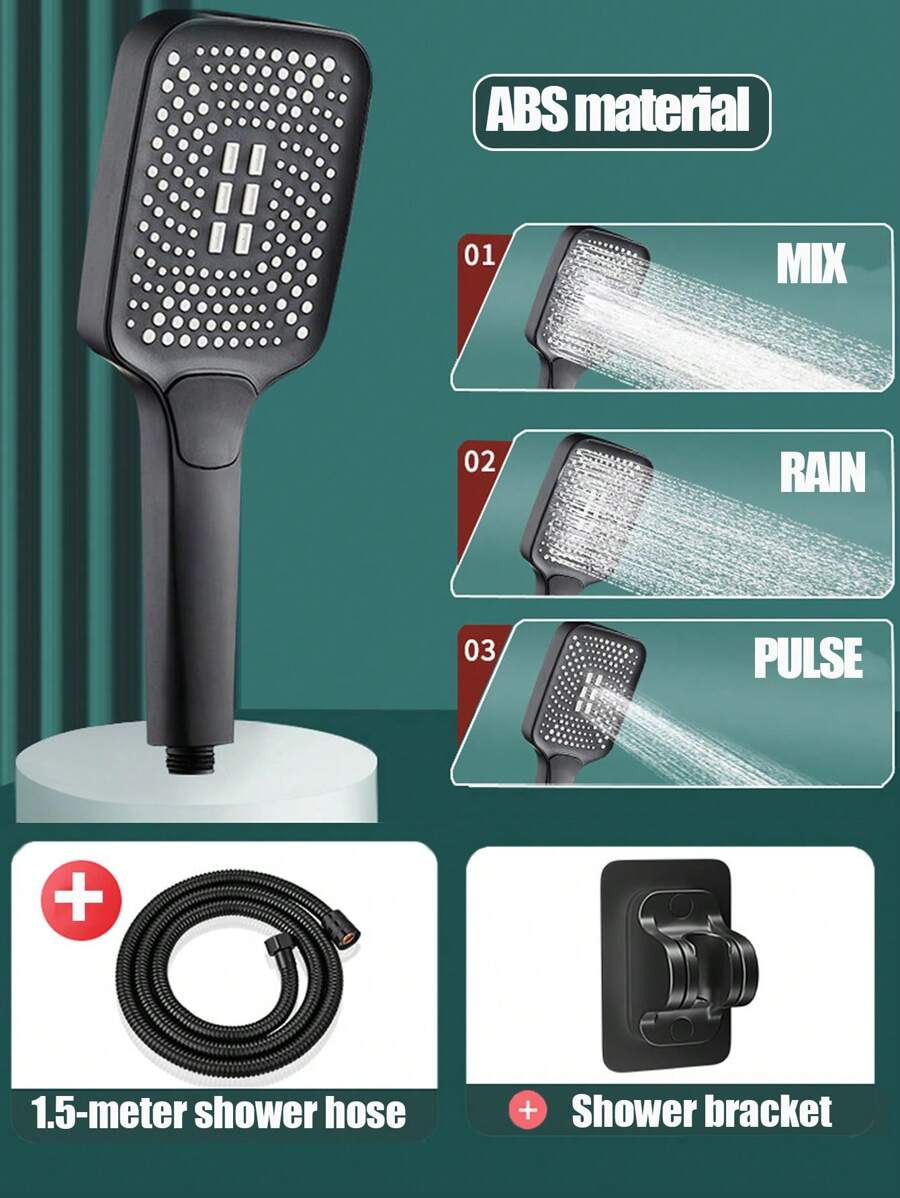Tatukiko High Pressure Square Shower Head With Large Water Outlets, High Flow Rate Single-Hand Shower Head, 1.5m Shower Hose, No-Drill Shower Holder, Bathroom Home Bathroom Decor Fall Decor Bathroom Accessories