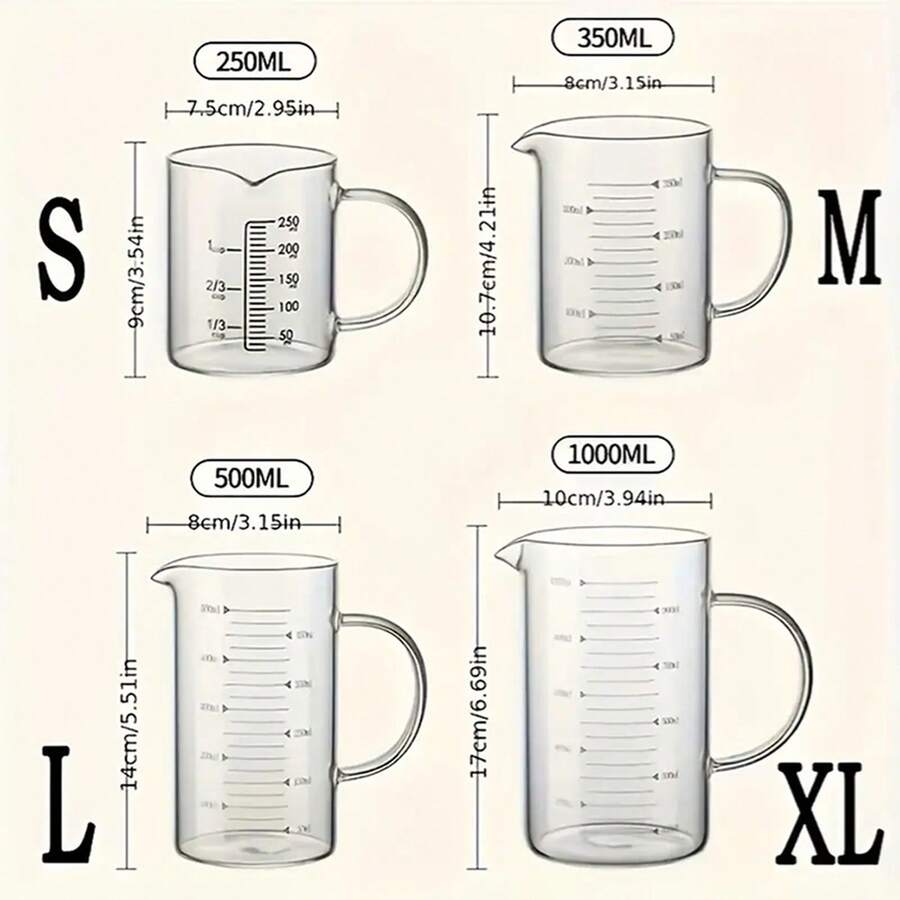 High Quality Heat-Resistant Graduated Glass Measuring Cup With Lid, Milliliter Capacity, Suitable For Heating Milk And Baking, Borosilicate Transparent