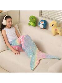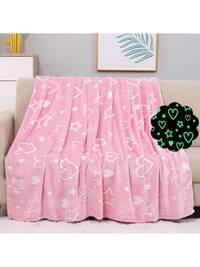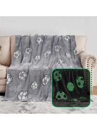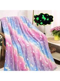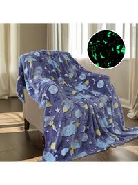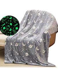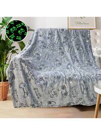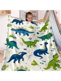 Children's Blue Dinosaur Print Glow-In-The-Dark Blanket, Gift For Boys And Girls, Comfortable Soft Plush Flannel Blanket, Suitable For Sofa, Bed, School, Birthday, Christmas, Halloween, Thanksgiving, Easter, Children Luminous Throw Blanket