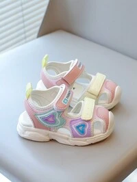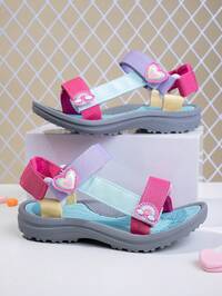 1 Pair Kids/Girls Spring/Summer Low Top Adjustable Hook And Loop Strap Casual Sports Sandals, Easy On/Off, Suitable For Daily Wear, Back To School, Campus, Students, Rainbow Heart Decor, Lightweight, Breathable, Non-Slip, Multipurpose Beach Sandals #2 Bestseller