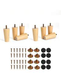 4pcs Black Round Solid Wood Furniture Legs, Medieval Style Furniture Legs Replacement Kit, Includes M8 Bolts, Rubber Sleeves, Screws, Non-Slip Pads, Suitable For Bedside Tables, TV Cabinets, Footboards, Chairs, Sofas, Cabinets, Bed Posts, Dressers, TV Stands, Wooden Furniture 8pcs Wooden Furniture Legs, Round Shaped Natural Wood Color, Replacement Legs For Furniture Like Bedside Tables, TV Cabinets, Footboards, Chairs, Sofas, Cabinets, Bed Frames, Dressers, Medieval Style