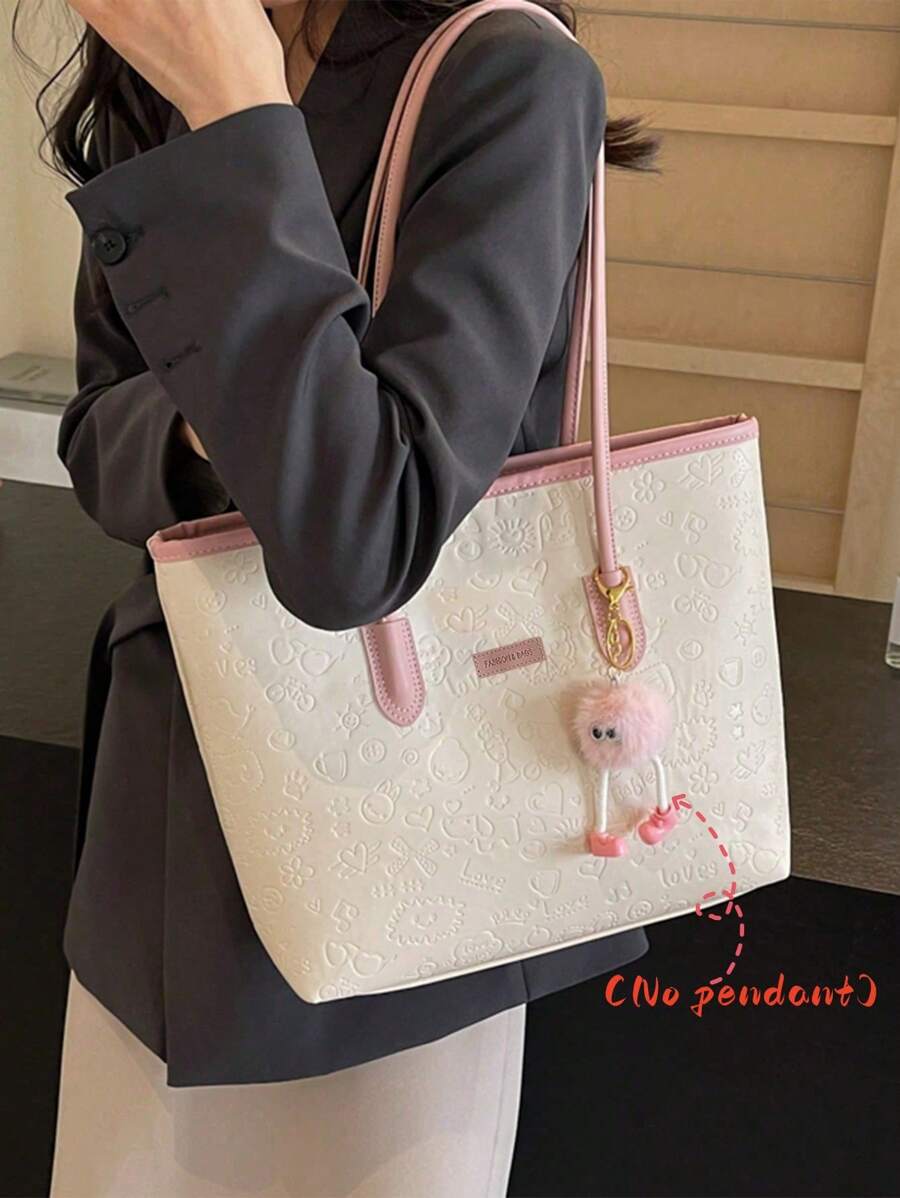 • Large-Capacity Women's Fashionable Versatile Shoulder Bag, New Tote Canvas Handbag, Preferred Design, Perfect For School, Commuting, And Shopping(No Pendant)