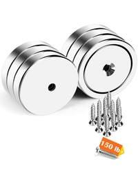 6pcs Cup Magnet 20lb-150lb Pull Force Magnets, With Countersunk Holes, Industrial Strength Round Base, Includes Screws, For Workplaces, Offices And Garages, Securing, Lifting, Hanging Tools (Silver)