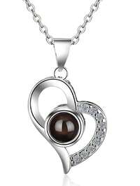 1pc 100 Languages I Love You Projection Stone Necklace, Rose Flower Gift Box, Eternal Flower Single Flower Gift Box Necklace Jewelry Pendant Drawer Gift Box, 100 Languages Projection Stone Necklace, Holiday Gift Suitable For Women, Mother's Gift