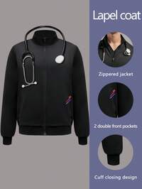 Men's Long Sleeve Lab Coat/Medical Uniform With Collar And Multiple Pockets, Casual Work Wear