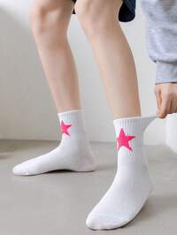 1 Pair, 5 Pairs, 10 Pairs, Women, Men, Basketball Socks, Sports Socks, Running Socks, Fashion, Innovation, Embroidered Five-Pointed Star Mesh Couple Socks, Summer, Anti-Odor Socks, Casual Mid-Length Socks, Spring And Autumn Four Seasons Versatile Socks, Cute, Comfortable, Sweat-Absorbing, Youth, Student, Daily Socks