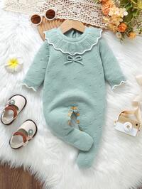 Sweetra KidsSHEIN Newborn Baby Sweater , Fashion Cute Knitted 3D Bow Round Neck Snap-Up Long Sleeve Ruffle Footed Romper, Soft & Comfortable, Suitable For Spring/Autumn, Daily Wear, Outings, Travel, Vacation, Home, Daycare, And Baby Play #1 Bestseller
