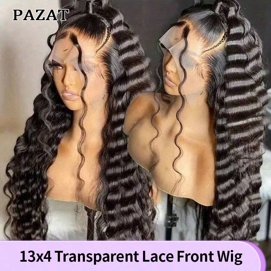 PAZAT 200% Loose Deep Wave Human Hair Wigs 13*4 13*6 Lace Closure Wig Brazilian Pre Plucked 4*4 5*5 Closure Wigs For Women Human Hair Short Bob Wigs(8-14inch)