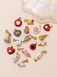 BananaElephant Jewelry1pc Cute & Fashionable INS Cartoon Style Stainless Steel Raccoon, Siamese Cat, Polar Bear, Parrot, Ice Cream Pendant, 18K Gold Plated, DIY Jewelry Accessory, Necklace, Bracelet, Earring, Keychain, Bag Charm, Women Jewelry, Wallet Charm, Suitable For Wife And Mother Casual Wear