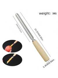 1pc Stainless Steel Fruit & Vegetable Pitter With Wooden Handle - Easily Pits Apples, Pears & More - Essential Kitchen Tool
