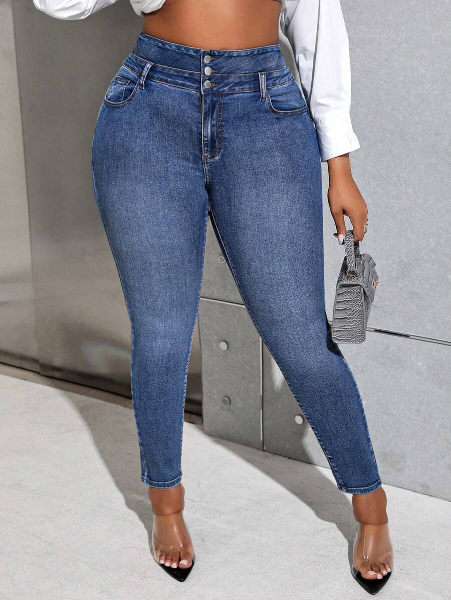 SHEIN Essnce พลัสไซส์ กางเกงยีนส์ สกินนี่ , แฟชั่น และ อเนกประสงค์