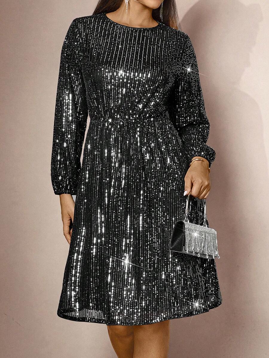 Zelara Plus Size Women Sequin Embellished Round Neck Long Sleeve Knee-Length Party Dress Winter Dress Women Winter Clothes Autumn Dress Autumn Outfits For Women New Year Dress Thanksgiving Outfit For Women Party Dress Elegant Dresses For Party Party Outfit Wedding Party Dress Elegant Dress Women Shiny Dress Sequin Dress Sparkly Dress Black Dress Sequin Dress Sparkly Dress Sequin Top Luxury Evening Dresses For Women Elegant Dress Party Dress Party Outfit Christmas Party Dress