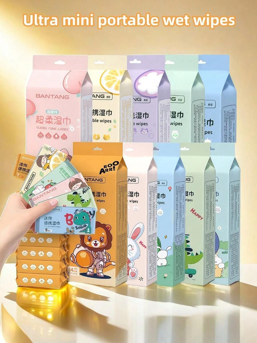 Portable Ultra Mini Wet Wipes, Cute Wet Wipes, Essential For Students, Outdoor Wet Wipes, Cleaning Wet Wipes, Portable Wet Wipes Disposable Cleaning Wet Wipes, Kitchen Cleaning, Stain Cleaning, Suitable For Daily Home Cleaning, Outdoor Travel Accessories, School Supplies, Perfect Gifts For Halloween And Christmas