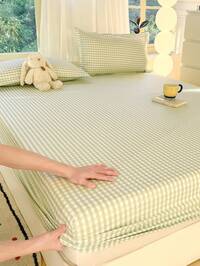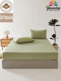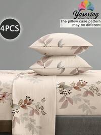 Yasoxing Home Textile3pcs Printed Aloe Vera Washed Bedsheet Set (1pc Bedsheet + 2pcs Pillowcases), Skin-Friendly, Non-Slip 360° Wrap, No Optical Brighteners, Breathable, Soft, Durable, Fade-Resistant, Antibacterial, Warm Bedding Set, Suitable For Bedroom, Guest Room, Dorm, All-Season