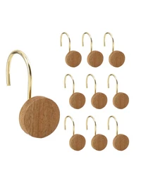 12pcs Gold Solid Wood + Stainless Steel Metal Shower Curtain Hooks, Waterproof, Rustproof, Drative, Suitable For Bathroom, Bedroom, Kitchen Accessories, Not Easy To Fall Off Home Bathroom Decor Fall Decor Bathroom Accessories