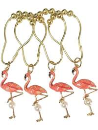 12pcs Flamingo Shower Curtain Hooks, Stainless Steel Rust-Proof Bathroom Decor Accessories (Flamingo)