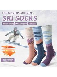3 Pairs Unisex Warm Ski Socks, Winter Sports Socks, Machine Washable, Suitable For Skiing/Hiking/Ice Skating/Skating - Adult Thermal Insulated Socks, Warm Socks, Winter Socks, Men's Winter Socks, Warm Socks, Ski Socks, Women's Winter Knee High Socks, Thermal Insulated Knee High Socks, Providing The Best Support For Skiing, Running, Travel, Sports And Hiking.