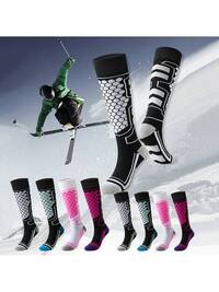 1/3 Pairs Women's Ski Socks, Warm Over-The-Knee Knitted Fabric, Winter Wool Socks, Spandex Material Terry Socks, Breathable Non-Slip Wear-Resistant Thick Socks, Moisture-Wicking Sports Equipment, Ideal Gift For Skiing, Suitable For Outdoor Sports (Such As Hiking, Trekking, Football, Basketball) For Teenagers One Pair All Size Winter Ski Socks, Moisture Wicking Quick Dry Long Socks, Unisex, Thick Warm Sports Socks, Non-Slip Cuff, Spandex Terry Socks, Multi-Functional Sports Socks, Wear-Resistant, Breathable Quick Dry, Warm And Comfortable, Suitable For Men, Teenagers Outdoor Sports Like Skiing, Climbing, Hiking, Snowboarding, Football, Basketball, Volleyball, Etc.