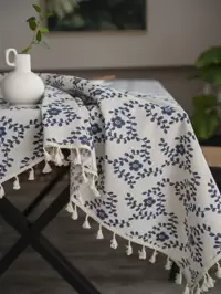 1pc Bohemian Vintage Blue Rose Floral Tassel Tablecloth, Rectangular Dust Cover For Dining Table, Coffee Table, Bedside Table, Suitable For Farmhouse, Kitchen, Dining Room, Living Room, Party, Picnic, Camping, BBQ, Holidays, Weddings, Home Decor, Spring/Summer #1 Bestseller