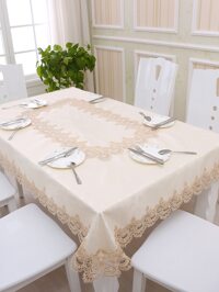 1pc Minimalist Beige Tablecloth, 3D Geometric Wavy Cutout Design With Beige Floral Lace Trim, Washable, Suitable For Dining Table, Dresser, Home Decor, Parties, Holidays, Hotels, Indoor & Outdoor Use, Autumn/Winter 1pc Vintage Black Floral Tassel Tablecloth, Coffee Table/Bedside Cabinet Decorative Cover, Home Decor, Suitable For Dining Room, Gathering, Dinner, Holiday Party, Banquet, Picnic, Thanksgiving Decoration, Autumn Decor 1pc Vintage Lemon Floral Tablecloth - Polyester, Woven, Rectangular, Stain Resistant, Wipe Clean, Home, Kitchen, Dining Room, Party, Holiday, Thanksgiving Gift Decoration #7 Bestseller