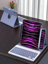 Rotating Protective Keyboard Case Compatible With Ipad, Compatible With IPad 10th Gen, PU Leather Material, Fits IPad 10.2", 9th/8th/7th Gen, Air 3/10.5", Pro 11" (2018/2020/2021/2022), With Acrylic Backplate And Pencil Slot, Suitable For IPad (A16) 11" 11th Gen (2025), Supports 3 Angle Adjustments, Compatible With IPad Air 4/5/11" (M2) 2024/(M3) 2025, Built-In 150mAh Battery - Gray