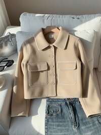 SparklynSparklyn Elegant Wool Blend Jacket For Teen GirlCasual & Versatile, Featuring Belt Waist, 2 Black Buttons, Lapel Collar Design, Suitable For School, Commute, Shopping, Walking, Can Be Paired With Pants, Sweatpants, Long Sleeve Tops, Sweaters